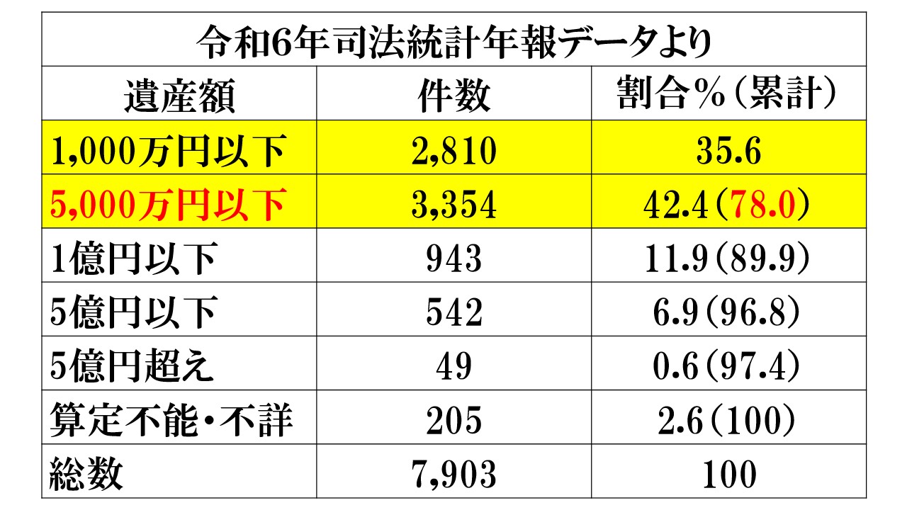 という方は多いのではないでしょうか。しかしながら、家族で揉めて【相続が争族】になるケースは年々増えています。表は令和6年司法統計年報のデータです。家庭裁判所で争った遺産額をみると、